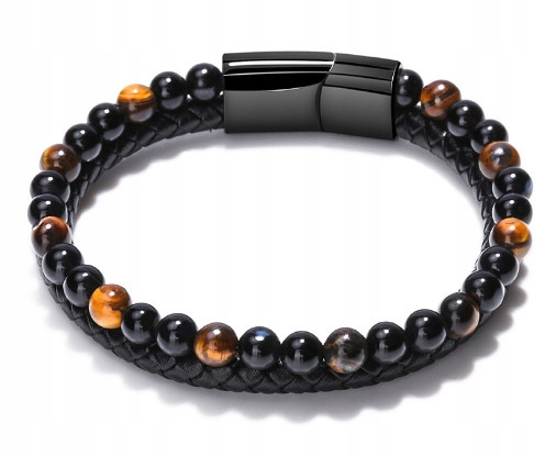 Bransoletka Tygrysie Oko i Kamień Wulkaniczny 21cm