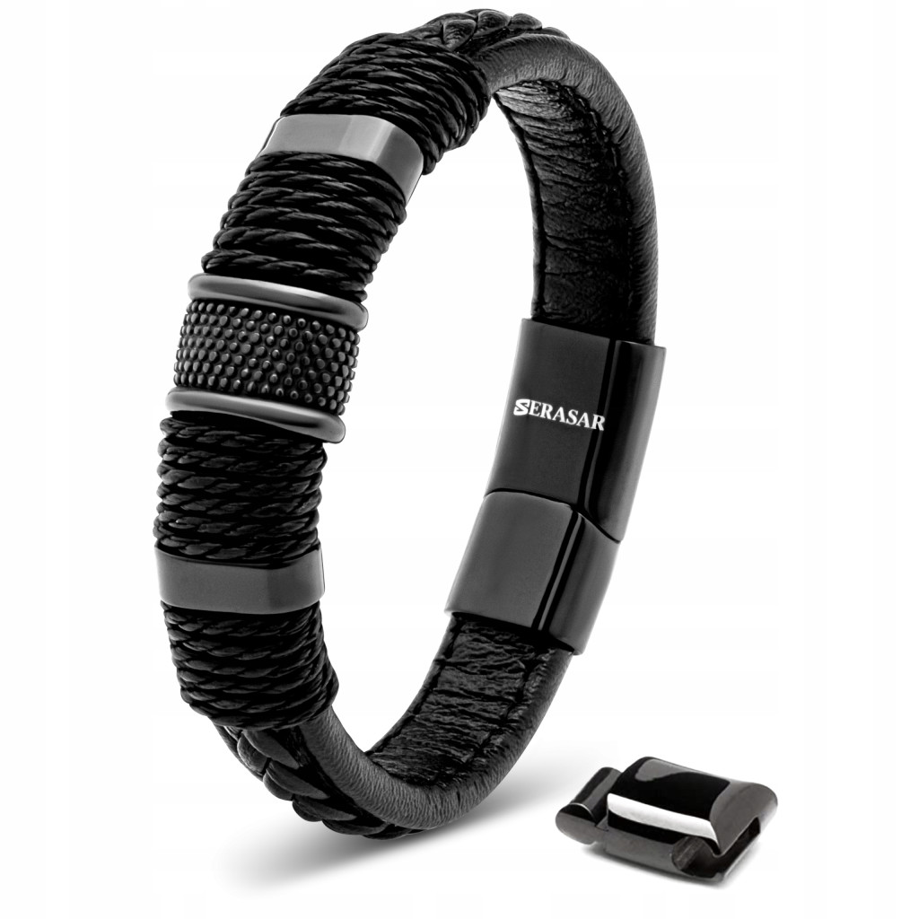 Nasza bransoletka ma atrakcyjny, a zarazem elegancki design, który poprzez łączenie różnych pasm skóry tworzy ciekawy obraz całość. Bez względu na to, czy wybierzesz bransoletkę w kolorze czarnym czy brązowym, na pewno przyciągniesz uwagę. Pokaż, co masz!