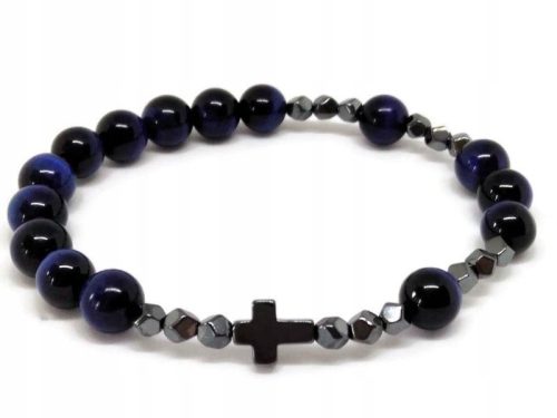 Bransoletka RÓŻANIEC wykonana z kamieni naturalnych TYGRYSIEGO OKA I HEMATYTU.