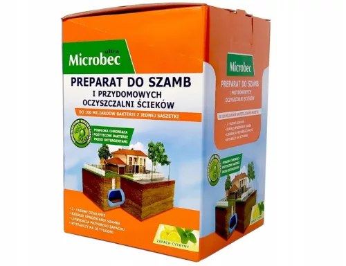 Preparat do biodegradacji zawartości szamba. Systematyczne stosowanie Microbec'u zmniejsza częstotliwość opróżniania szamba, usuwa nieprzyjemny zapach i udrażnia system instalacji sanitarnej.