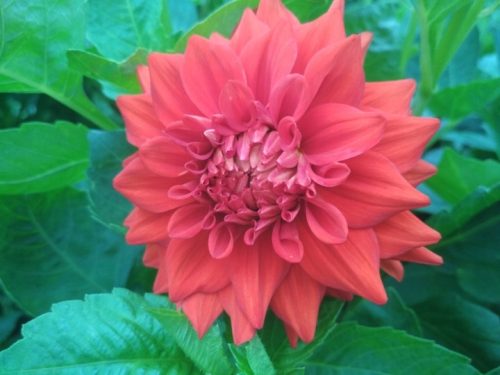 Przepiękna czerwono - ceglasta dalia czy inaczej georginia.