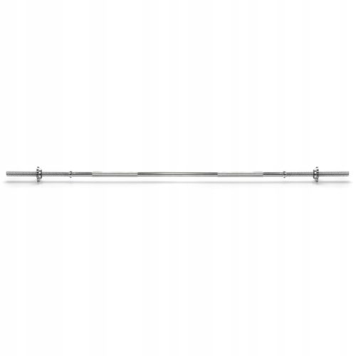W komplecie znajdują się dwie nakrętki, które odpowiadają za stabilizację obciążenia na gryfie. System gwintowanych końców wraz z dedykowanymi nakrętkami ułatwia szybką zmianę obciążeń, co jest nieocenione, gdy zależy nam na czasie i efektywności treningu. Warto zwrócić na to uwagę, zwłaszcza gdy planujemy intensywny trening z dużymi ciężarami. Gryf jest przystosowany do pracy z obciążeniami o średnicy otworu 25 mm, co czyni go uniwersalnym i dostosowanym do potrzeb szerokiej grupy użytkowników.