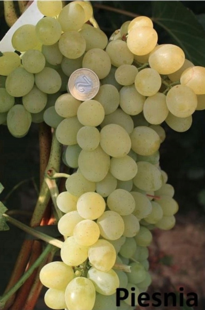 PIESNIA -jest to odmiana pochodząca z Rosji , bardzo atrakcyjna ze względu na względnie wysoką mrozoodporność -25°C. Jest to jedna z niewielu odmian winogron wielko-owocowych , która z powodzeniem może być uprawiana bez zabezpieczeń nawet w chłodnych rejonach. Piesnię wyróżnia także bardzo wczesna pora dojrzewania owoców. Przy słonecznym lecie , owoce mogą być dojrzałe już w pierwszej połowie sierpnia.