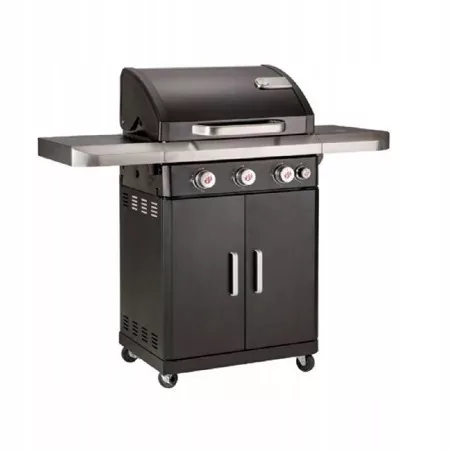 Grill jest niezwykle łatwy w obsłudze – elektroniczny zapalnik pozwala błyskawicznie uruchomić palniki, a wbudowany termometr zapewnia pełną kontrolę nad temperaturą w komorze grillowej. Dzięki dużemu rusztowi o wymiarach 64 x 40 cm, przygotujesz jedzenie nawet dla 12 osób, co czyni ten grill idealnym wyborem na spotkania rodzinne i większe imprezy.