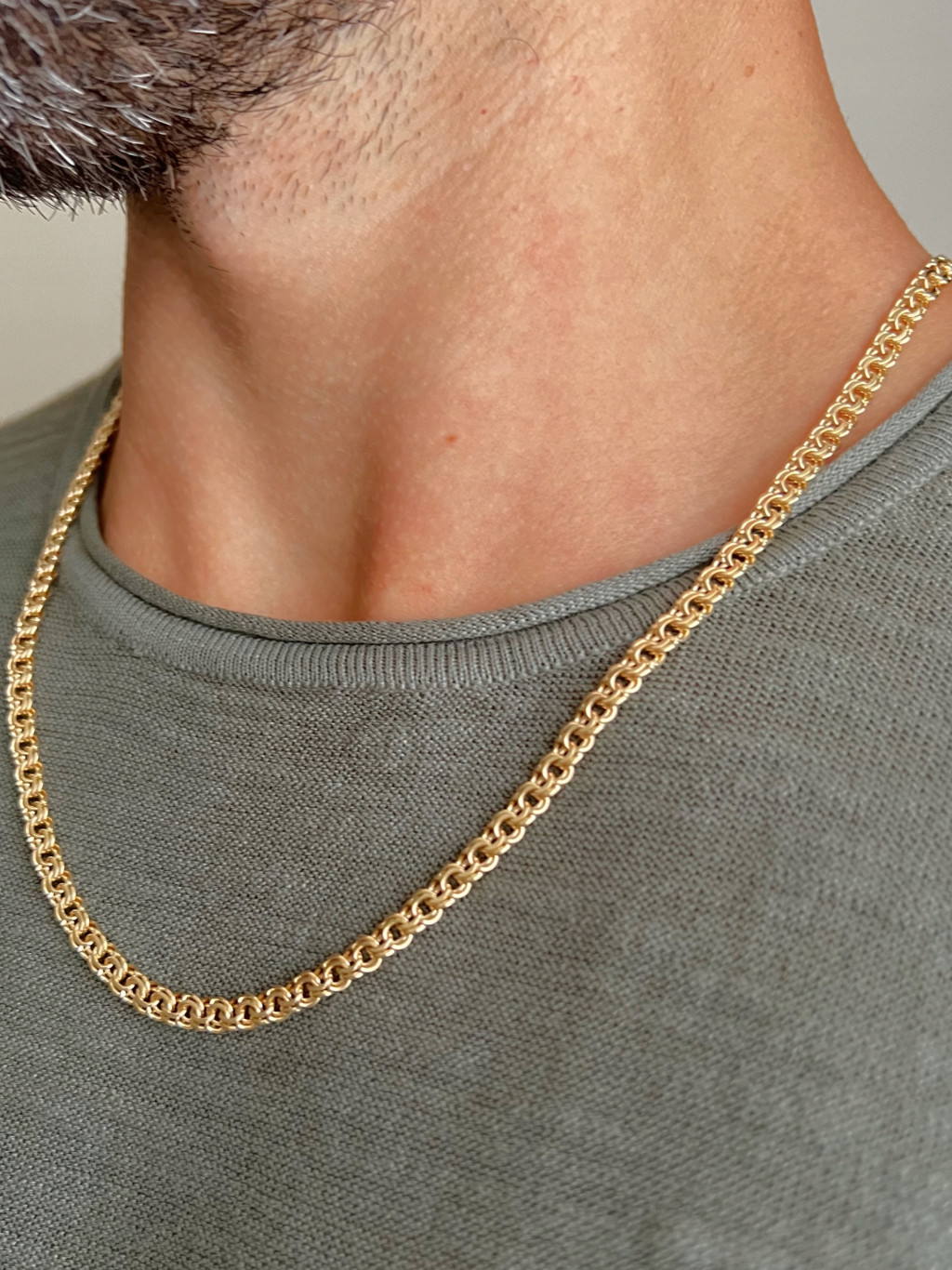 Poznaj prawdziwą definicję luksus dzięki naszemu ekskluzywnemu złotemu łańcuszkowi, wykonanemu z najwyższej jakości złota - próba złota 585 (14 karatów). Ten elegancki łańcuszek o długości 55 cm, przeznaczony dla mężczyzn, wyróżnia się niezwykle stylowym splotem typu Galibardi, który nadaje mu charakterystyczny, wyrazisty wygląd. To perfekcyjny wybór dla mężczyzn ceniących sobie klasę, prestiż i wyrafinowany design.