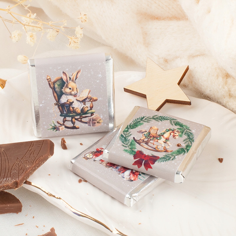 Odkryj wyjątkowy smak czekoladek, które zostały starannie ozdobione motywami nawiązującymi do wspomnień świąt z dzieciństwa.