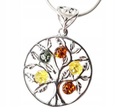 Oferujemy Państwu piękny WISIOREK srebrny z prawdziwym BURSZTYNEM w kształcie DRZEWKA ŻYCIA (drzewka szczęścia) wraz ze srebrnym łańcuszkiem w komplecie.