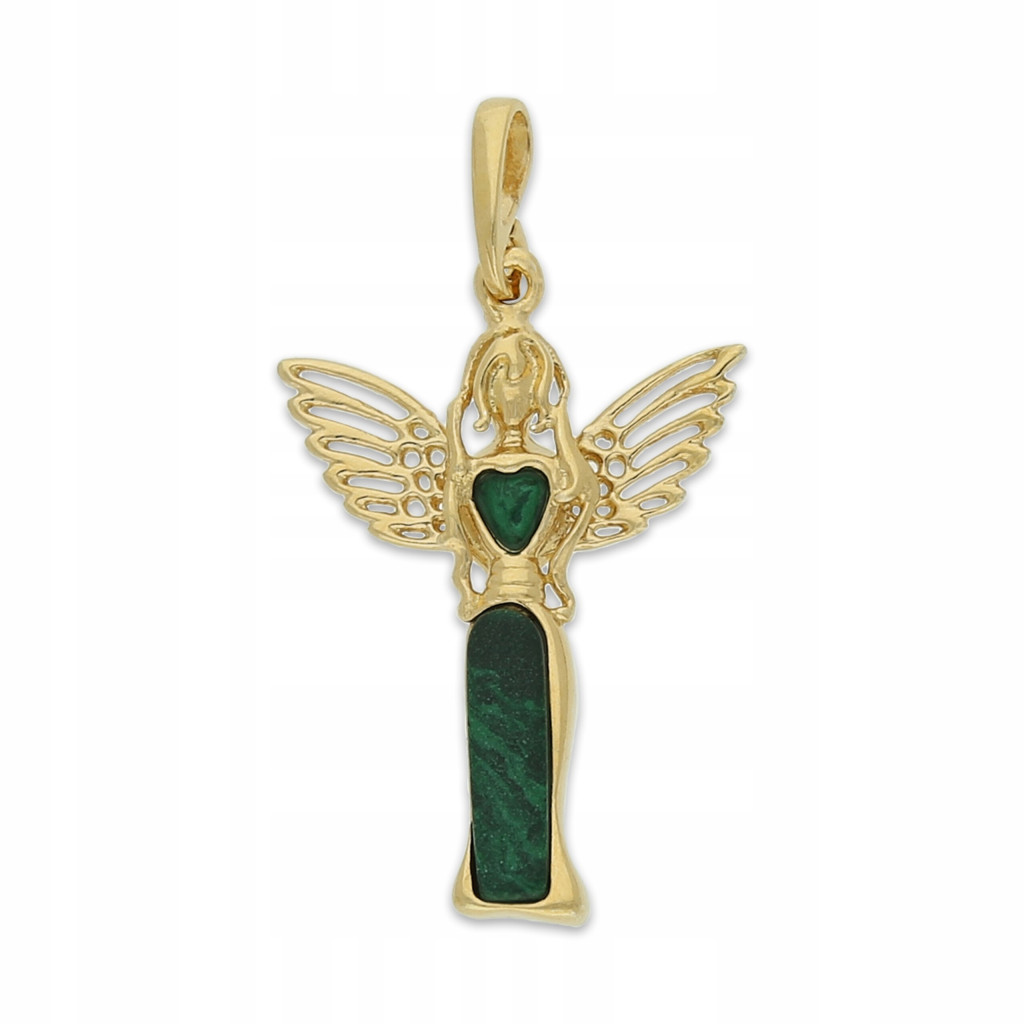 ZŁOTY WISIOREK ANIOŁ Z MALACHITEM