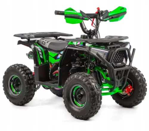 Mini quad ASIX M10 to idealny pojazd dla młodych adeptów off-roadu. Napędzany jest niezawodnym 2-suwowym silnikiem o pojemności 49 cm³, uruchamianym za pomocą rozrusznika elektrycznego lub szarpaka easy starter. Wyposażony w podwójny tłumik z osłonami termicznymi, gwarantuje dynamiczną jazdę i bezpieczeństwo. Pojazd posiada automatyczną skrzynię biegów oraz wytrzymałe, 6-calowe stalowe felgi z oponami o wysokim bieżniku, co zapewnia doskonałą przyczepność na różnych nawierzchniach. ASIX M10 wyróżnia się solidną stalową ramą, hydraulicznymi hamulcami tarczowymi oraz regulowanym zawieszeniem, co czyni go doskonałym wyborem dla najmłodszych kierowców. Dodatkowe elementy, takie jak oświetlenie LED, bagażniki oraz zrywka bezpieczeństwa, dopełniają jego funkcjonalność i bezpieczeństwo.
