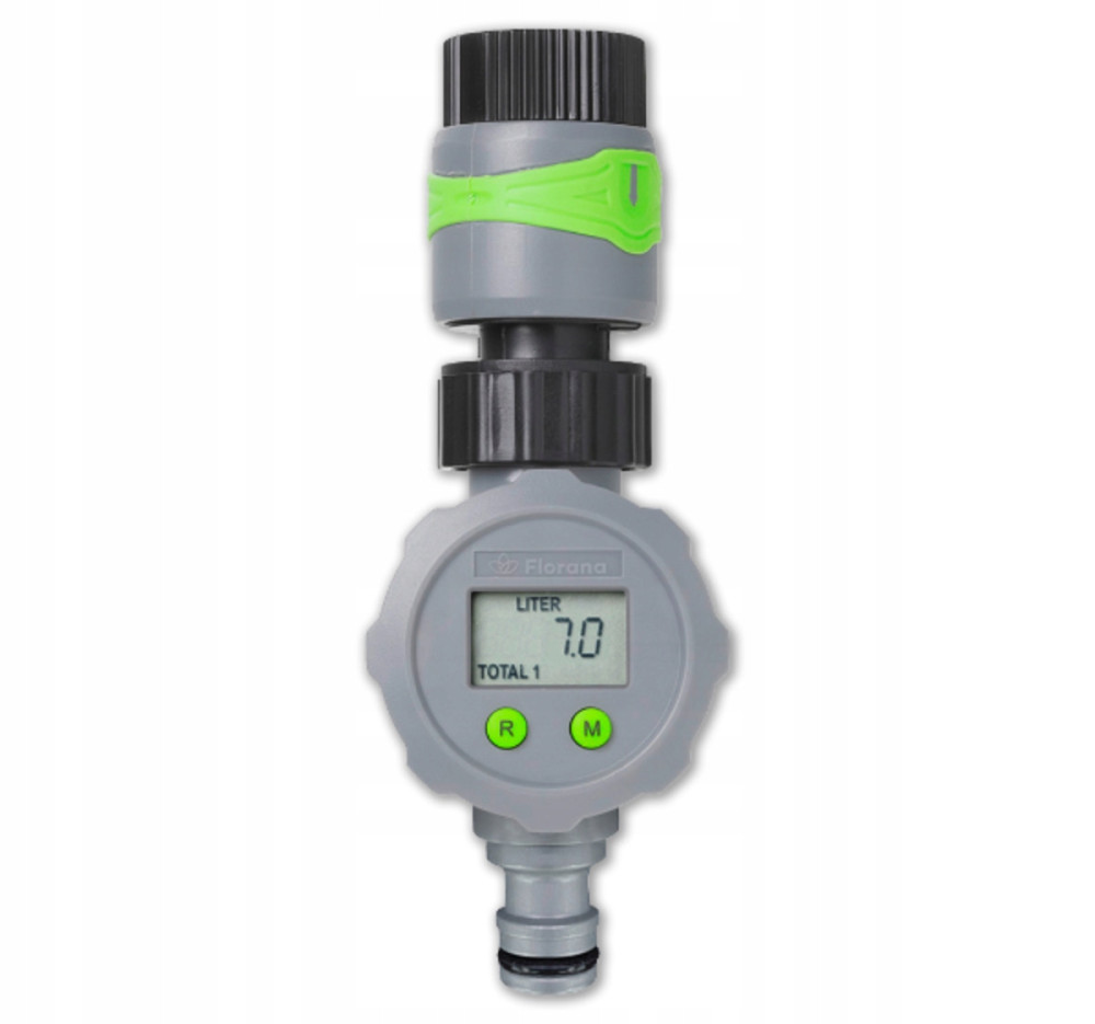 Wodomierz może być używany dwukrotnie, albo pomiędzy narzędziem ogrodniczym z odpływem wody a wężem, albo bezpośrednio na kranie.