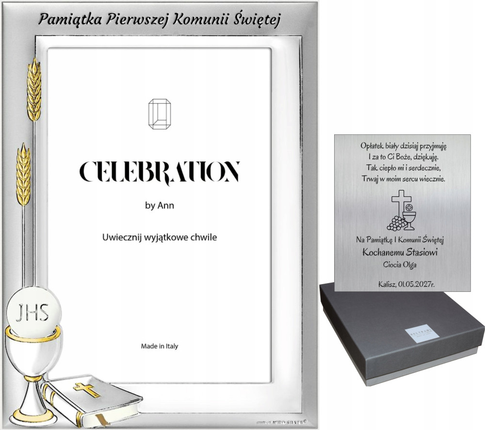 Posrebrzana ramka na zdjęcie - Pamiątka I Komunii Świętej.