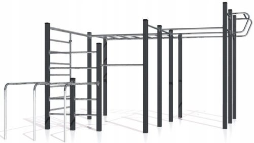 Zestaw skręcany i przystosowany do wbetonowania, a dzięki zabezpieczeniu antykorozyjnemu oraz malowaniu proszkowemu, idealnie nadaje się do treningu na świeżym powietrzu, bez względu na porę roku