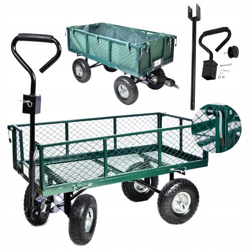 Demontowana rączka pozwala na łatwe przyczepienie wózka do ogrodowego traktorka, kosiarki lub quada, dzięki temu możesz jeszcze lepiej wykorzystać jego potencjał.