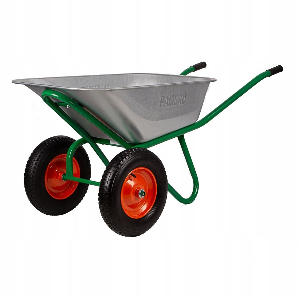 Taczka budowlana, dwukołowa, wzmocniona, nośność 320 kg, pojemność 100 l - Palisad
