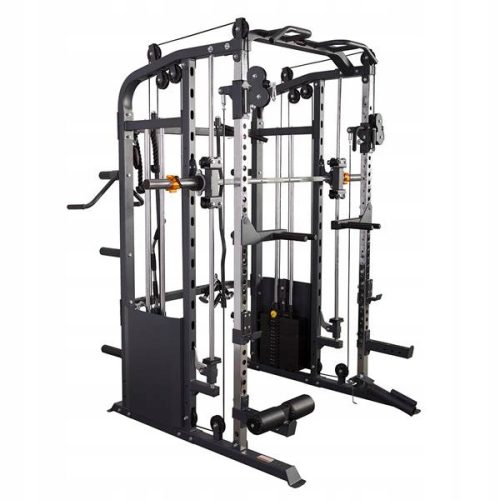 Konstrukcja naszej niezwykłej Suwnicy Smitha wprowadza zupełnie nowe możliwości do treningu siłowego. Dzieje się tak przede wszystkim za sprawą zespolenia mechanizmu przesuwnego z gryfem oraz systemem asekuracji. Ten model jest również wyposażony w dodatkowe elementy. Oznacza to, że decydując się na zakup CYKLOP 2 HMS, otrzymujesz urządzenie do wszechstronnego treningu całego ciała. CYKLOP 2 HMS jest stabilnym urządzeniem klasy Semi Commercial. Sprzęt idealnie nadaje się do użytku komercyjnego w małych klubach fitness, siłowniach, a także w warunkach domowych. To urządzenie łączy klasyczną Suwnicę Smitha z wyciągami, dlatego twój trening będzie wykonany na 100%!