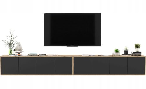 Dwie wiszące szafki RTV w stylu Loft z kolekcji APOLLO, idealnie nadają się pod telewizor oraz pasują do każdego wnętrza. Umieszczone obok siebie tworzą jeden długi, bardzo ładnie prezentujący się mebel. Posiadają cztery funkcjonalne, zamykane komory z podziałem na dwa poziomy. Wygodny system "push to open" do otwierania drzwiczek.