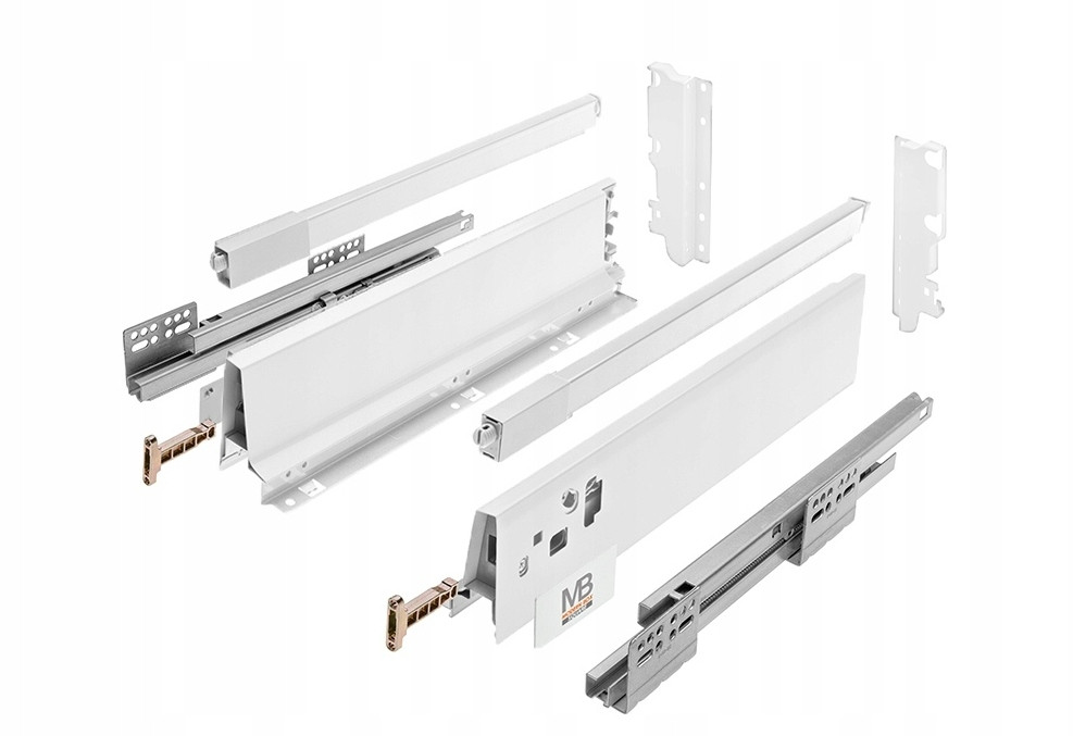Występuje w 4 wariantach wysokości (68, 83, 146, 210 mm) dla szuflad uniwersalnych, zarówno z frontem wpuszczanym, jak i nakładanym.