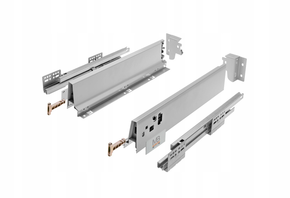 MODERN BOX SQUARE to system szuflad występujący w kolorze białym i szarym. Szuflada jest solidnie wykonana i gwarantuje codzienny komfort użytkowania. Funkcjonalność i nowoczesny design, sprawiają że MODERN BOX to idealne rozwiązanie dla każdej typu pomieszczeń, min. kuchni, łazienki, garderoby. Seria prowadnic występuje w 3 wariantach wysokości 83mm, 146mm i 210mm. Dostępne w zakresie długości od 250-600 mm pozwalając na całkowite wysunięcie szuflady. Jest to niezwykle przydatne w przypadku płytkich szuflad, gdzie dostęp do tylnej części jest utrudniony. Obciążenie szuflady GTV Modern BOX pozwala na zagospodarowanie w niej aż do 40 kg różnych produktów. Rozwiązaniem poprawiającym kulturę pracy jest także synchronizacja toru jazdy prowadnic. Łatwość montażu zapewnia regulacja w pionie i poziomie w stopniu 2 mm, a estetykę gwarantują zaślepki otworów regulacyjnych.