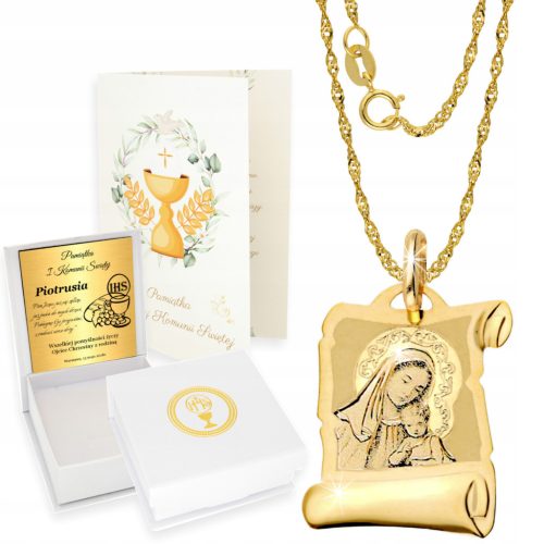Łańcuszek i medalik wykonany w całości ze złota próby 333 (8 karatowego).
