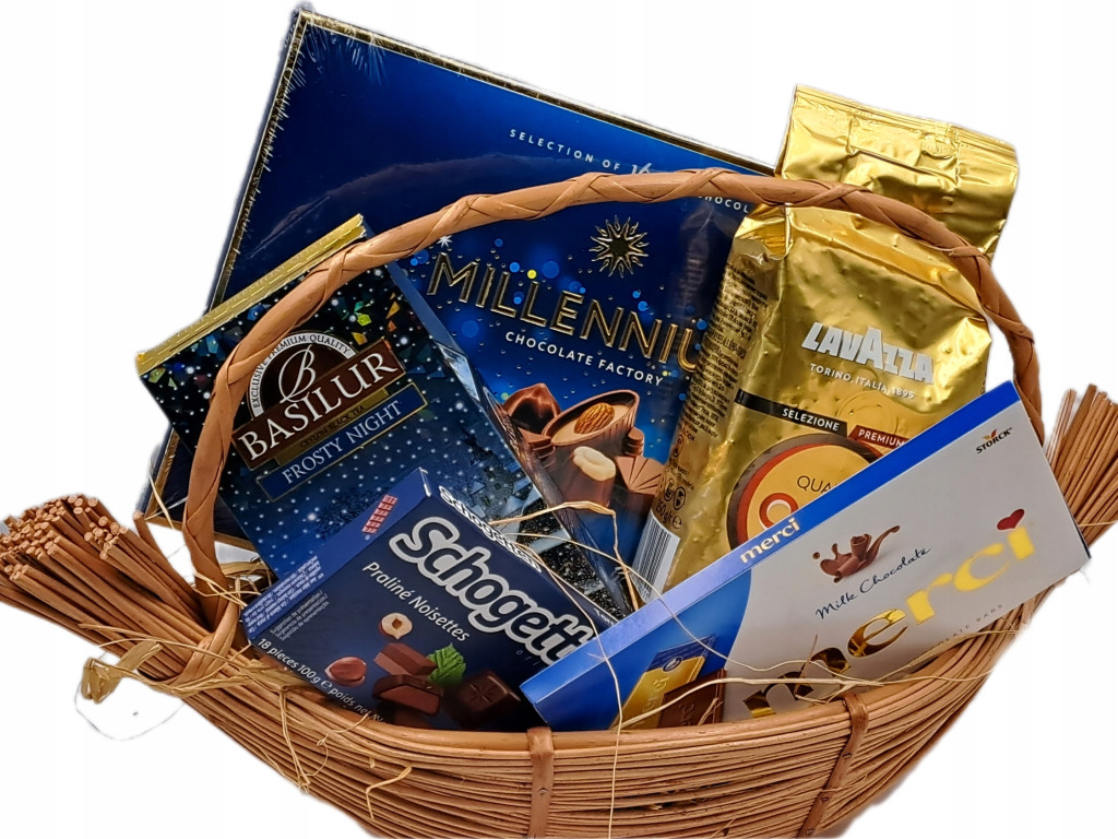 Kosz prezentowy w odcieniach złota dopasowany kolorystycznie.
