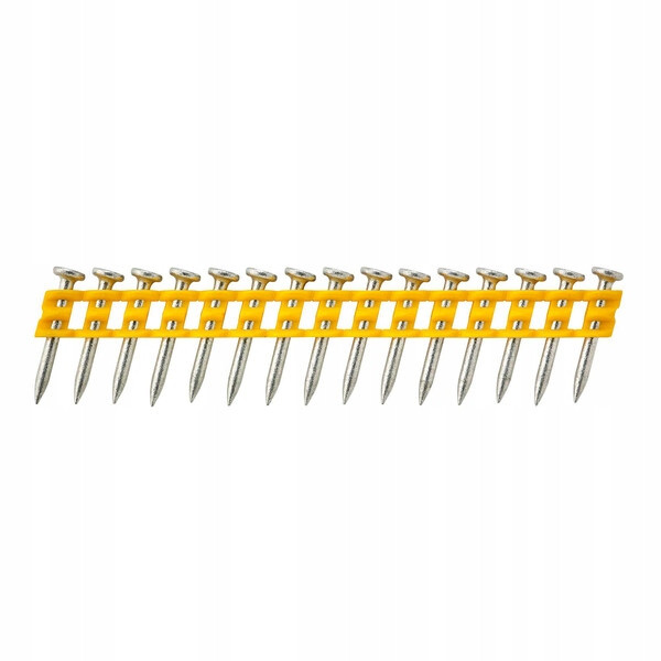 Dla większej wygody gwoździe w wersji standard mocowane są na taśmie plastikowej w kolorze żółtym.