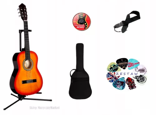 Idealnie sprawdzi się na lekcje gry. Gitara zaskakuje pod względem komfortu gry. W gitarze zamontowane są struny nylonowe.