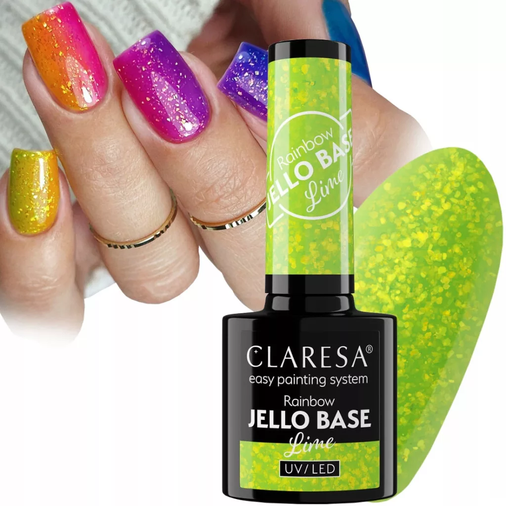 CLARESA RAINBOW JELLO BASE PÓŁTRANSPARENTA BAZA HYBRYDOWA Z DROBINAMI FOLII - LIME⭐⭐⭐⭐⭐