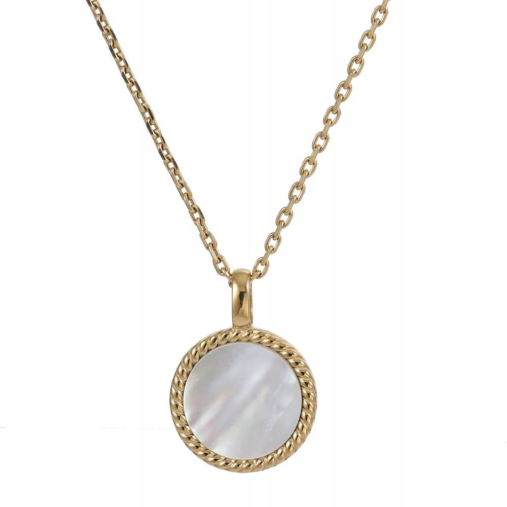 Ten zachwycający naszyjnik o splocie kotwicznym to symbol klasycznej elegancji i wyrafinowania. Wykonany z hipoalergicznej stali nierdzewnej i pokryty luksusowym złoceniem 14K, ozdobiony naturalnym perłowcem, stanowi idealny wybór dla osób ceniących subtelną i wysmakowaną biżuterię. Zawieszka o wymiarach 22,5mm x 16mm x 3mm jest otoczona delikatnym, skręconym wzorem przypominającym linę, co nadaje naszyjnikowi unikalnego charakteru. Łańcuszek ma długość 45 cm, delikatnie układając się wokół szyi, dzięki czemu świetnie nadaje się zarówno do codziennych stylizacji, jak i na specjalne okazje.