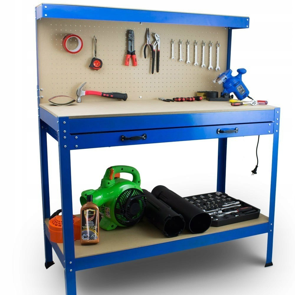 DUŻY STÓŁ MAJSTERKOWICZA WARSZTATOWY Z SZUFLADĄ I UCHWYTAMI NA NARZĘDZIA