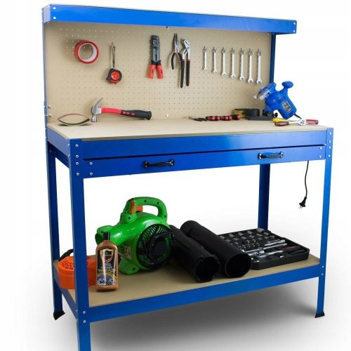 Praktyczny, uniwersalny stół będzie z pewnością dobrym rozwiązaniem dla każdego majsterkowicza. Wyposażony jest w uchwyty na narzędzia oraz w szufladę. Dzięki niemu w łatwy sposób utrzymasz porządek w warsztacie oraz znacznie ułatwisz sobie pracę.