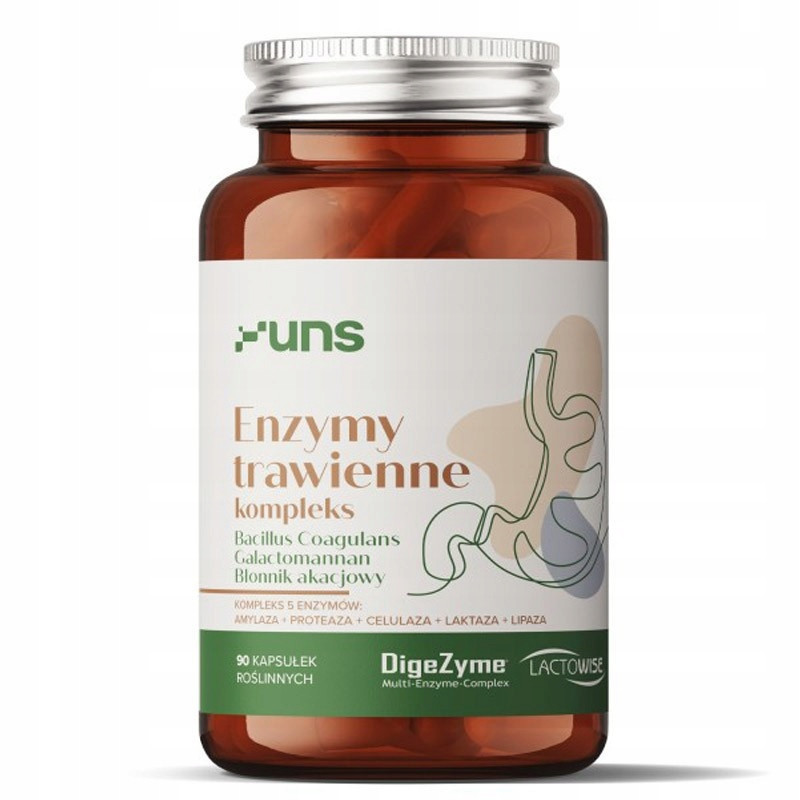 UNS Enzymy Trawienne Kompleks to produkt, który łączy w sobie wiele składników aktywnych wspomagających optymalne procesy trawienia. Lepsze trawienie produktów spożywczych wpływa pozytywnie na stan zdrowia całego organizmu, warto jest zadbać o podaż odpowiedniego produktu regulującego funkcjonowanie układu pokarmowego. UNS Enzymy Trawienne Kompleks jest świetnym suplementem da każdej osoby, która chce zadbać o prawidłowe trawienie.