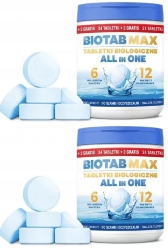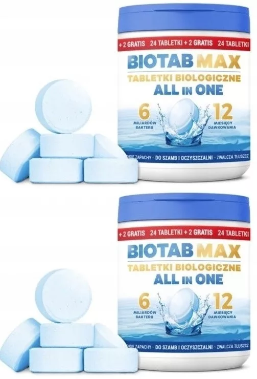 BioTab to rozpuszczalne tabletki biologiczne z najwyższą dawką bakterii beztlenowych oraz tlenowych, enzymami, czynnikiem odtłuszczającym oraz pożywką startową.
