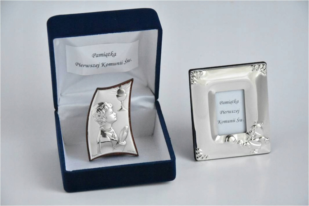 Zestaw łączy w sobie ozdobną ramkę na zdjęcie oraz symboliczny włoski obrazek na pamiątkę wyjątkowego wydarzenia jakim dla każdego dziecka jest Pierwsza Komunia Święta.