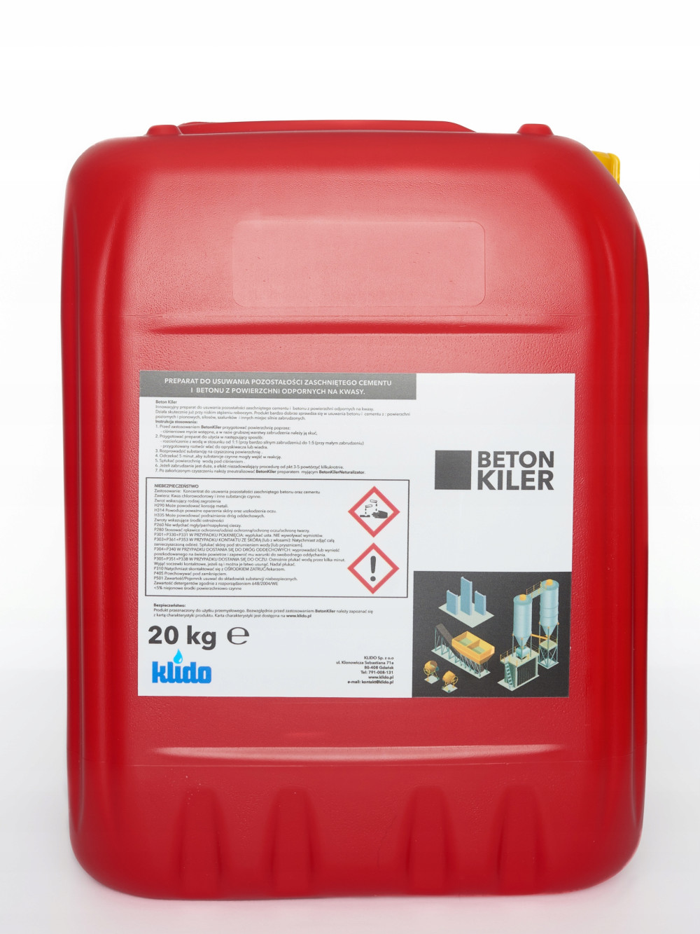 Beton Kiler to silny koncentrat do użytku przemysłowego, idealny do czyszczenia ciężko zabrudzonych betonem maszyn budowlanych, silosów na cement, cystern, szalunków, betoniarek czy rusztowań. Bardzo dobrze sprawdza się przy czyszczeniu powierzchni zarówno poziomych jak i pionowych narażonych na bezpośredni kontakt z betonem.