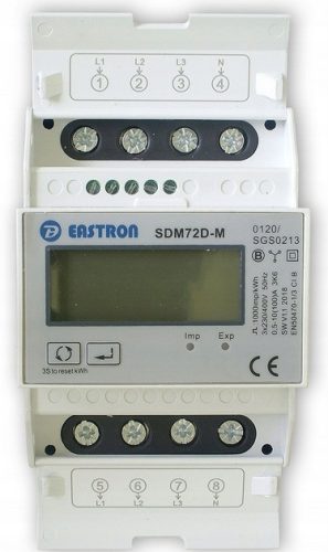 Trójfazowy licznik SDM72D-M przeznaczony jest do zdalnego odczytywania pomiarów energii elektrycznej poprzez magistralę MODBUS RTU (RS485).Współpracuje z urządzeniem LAN Kontroler v3.7Licznik wskazuje moc i energię pobieraną oraz eksportowaną, np w przypadku generacji z PV. Dlatego idealnie nadaje się do kontroli instalacji fotowoltaicznych.