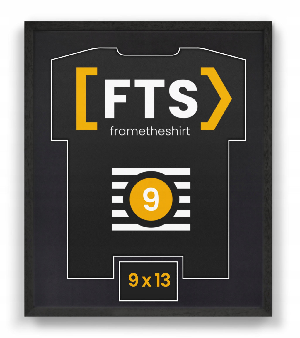 W ramach FTS widoczny jest tylko FRAGMENT koszulki (nie ma możliwości pokazania CAŁEJ koszulki), pokazują to co w koszulce NAJWAŻNIEJSZE – herby, sponsorów technicznych/ tytularnych, imię/ nazwisko sportowca, jego numer itp. Rozmiar oprawianej koszulki (S/M/L) nie ma znaczenia. Istotne jest aby była to koszulka „dla dorosłych” – układ herbów, sponsorów jest przeważnie taki sam niezależnie od rozmiaru. Zalecamy zapoznanie się z wymiarami wyciętego kształtu koszulki – ta część koszulki będzie widoczna w ramie (wizualizacja).