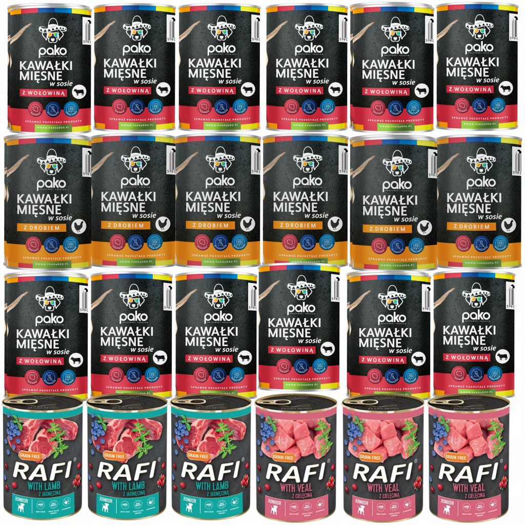 Codzienne żywienie szczeniąt i młodych psów wymaga zapewnienia wszystkich składników odżywczych niezbędnych w harmonijnym wzroście i rozwoju ich organizmów. Mięso i surowce pochodzące z jagnięciny, oprócz pełnowartościowego białka, są cennym źródłem metioniny, izoleucyny i cystyny. Karma dzięki obecności oleju z łososia charakteryzuje się wysoką zawartością kwasów tłuszczowych z rodziny n-6, które w istotny sposób wpływają na regulację procesów metabolicznych. Uważane są również za istotny czynnik stanowiący o odpowiedzi immunologicznej zwłaszcza w przypadku młodych organizmów. Dodatkowo mokra karma Rafi Junior z jagnięciną zapewnia odpowiednie zmineralizowanie kości i zębów, co ma duże znaczenie dla szczeniąt i młodych psów. Żurawina i borówka wzbogacają codzienną dietę psa o substancje przeciwutleniające i przeciwzapalne, a tymianek stymuluje wydzielanie soków trawiennych.