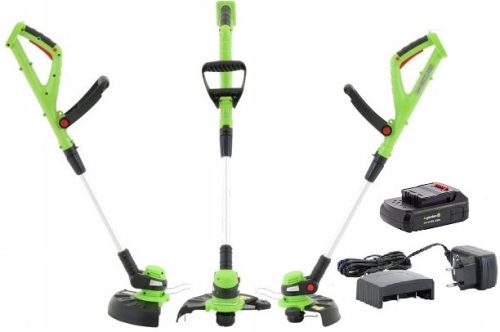 Urządzenie o szerokości roboczej koszenia równej 25 cm, posiada teleskopową rurę, umożliwiającą dostosowanie wysokości narzędzia do użytkowania w celu zapewnienia maksymalnego komfortu pracy, regulowany uchwyt oraz głowicę tnącą, które również wpływają na wygodę pracy, poszerzają również zakres zastosowania np. do wycinaniu krawędzi ścieżek.
