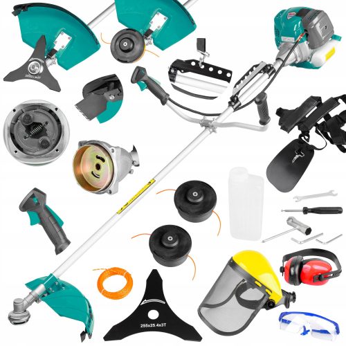 Wyposażona w żyłkę i tarczę tnącą, co pozwala na precyzyjne przycinanie trawników oraz usuwanie większych zarośli.