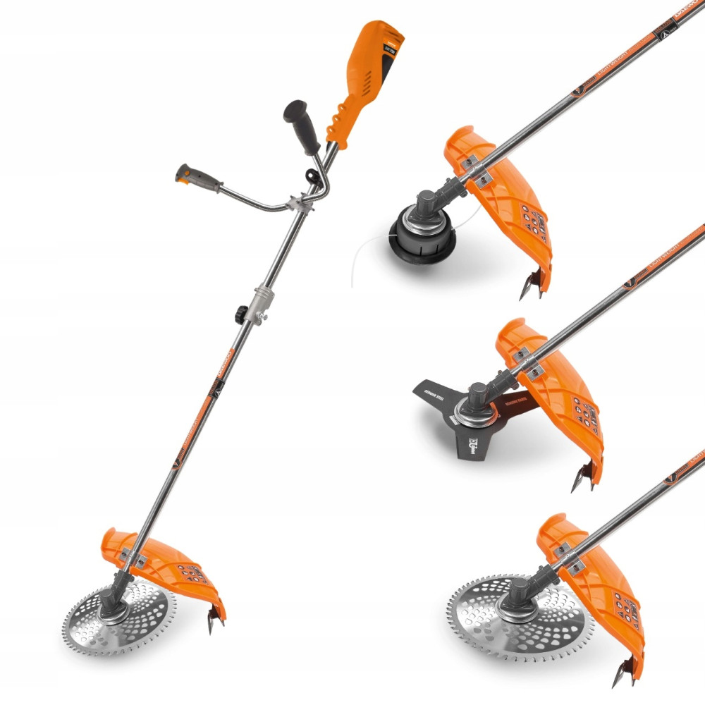 ✔ Półautomatyczna głowica żyłkowa + nóż trójzębny + tarcza tnąca