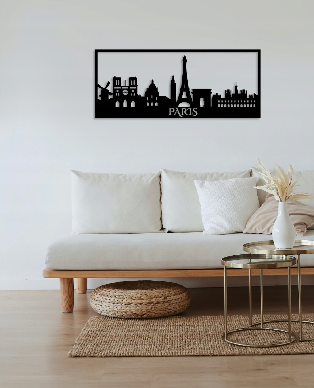Scopri la magia di Parigi con la nostra decorazione da parete "Città degli Innamorati", perfetta per gli amanti delle città e non solo. Realizzata in materiale HDF leggero, questo pezzo d'arte misura 70 cm di lunghezza e 28 cm di altezza e offre un'installazione semplice senza bisogno di trapanare: si attacca facilmente al muro con nastro adesivo di marche come Tesa o Pattex (nastro non incluso nel pacchetto). Scegli tra tre eleganti colori: nero, marrone o bianco (specificare il colore desiderato al momento dell'ordine, altrimenti verrà inviato in nero). Prodotto orgogliosamente in Polonia e personalizzabile per rappresentare diverse città o su richiesta specifica.