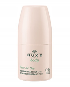 Nuxe Body Reve de The dezodorant 24-godzinna świeżość to roll-on o płynnej i lekkiej konsystencji, która szybko się wchłania i zapewnia natychmiastową świeżość do 24 godzin. W jego formule kluczową rolę odgrywają:
