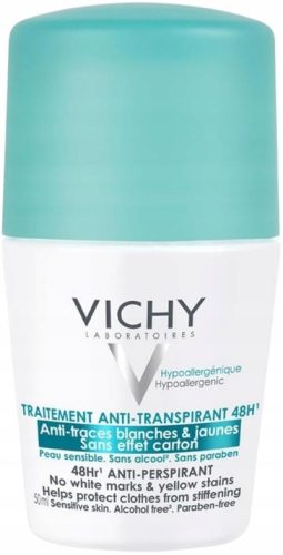 Vichy antyperspirant roll-on przeznaczony jest dla osób o wrażliwej skórze, które chcą zachować świeżą, suchą skórę pod pachami. Dezodorant jest łatwy w aplikacji, ma przyjemny, delikatny zapach i nie pozostawia śladów, dzięki czemu ubrania nie ulegają zniszczeniu.