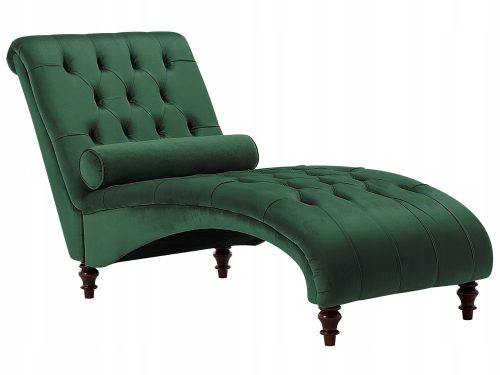 Opływowy kształt i elegancki design, ten inspirowany stylem vintage szezlong stanie się punktem centralnym każdego wnętrza. Zachęcająco zaokrąglone siedzenie z oparciem w stylu Chesterfield podkreślone jest pikowaną tapicerką i ozdobnymi drewnianymi nóżkami. Dzięki grubej warstwie piankowego wypełnienia i dołączonej poduszce leżanka jest wyjątkowo wygodna.