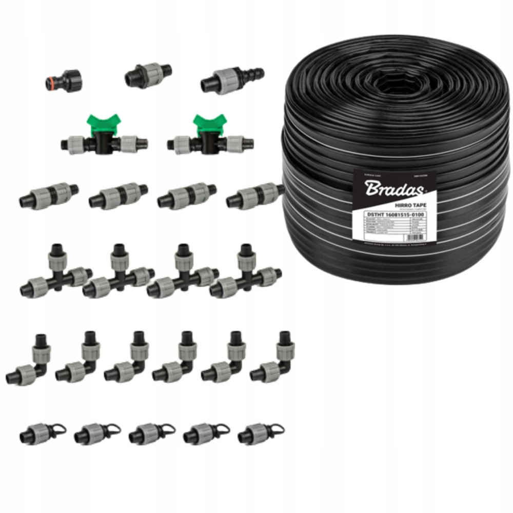 Wszystkie elementy w zestawie są wykonane z wysokiej jakości materiałów, które są trwałe i odporne na warunki atmosferyczne. Dzięki temu zestawowi akcesoriów będziesz mógł łatwo i skutecznie zbudować własny system nawadniania za pomocą taśmy kroplującej.
