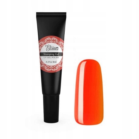 Elisium Stamping Gel to świetny żel do stemplowania wzorów na paznokciach. Cudowny, żywy kolor pomarańczy nada Twoim paznokciom blasku. Stań się stylistką paznokci w domowym zaciszu. Dzięki odpowiedniej gęstości żelu, wzory odbiją się precyzyjnie na płytce paznokcia. Aplikacja jest wyjątkowo szybka, łatwa i przyjemna. Produkt jest zamknięty w niewielkiej tubce zakończonej cienkim otworem, dzięki czemu nałożysz odpowiednią ilość żelu na wzór na blaszce. Żel jest gęstszy niż lakier hybrydowy, dzięki czemu odbity wzór będzie bardziej wyrazisty.