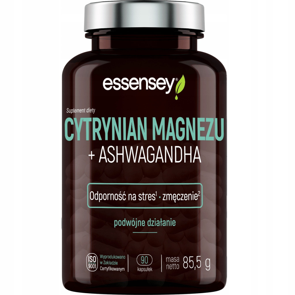 ESSENSEY CYTRYNIAN MAGNEZU + ASHWAGANDHA to suplement diety w postaci kapsułek zawierający cytrynian magnezu, ekstrakt z korzenia Ashwagandhy oraz witaminę B6.