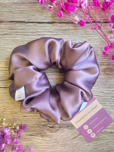 Jedwabna scrunchie wykonana ręcznie z certyfikowanego jedwabiu naturalnego. Wyjątkowo trwała i delikatna, tj. nie szarpie, nie łamie i nie wyrywa włosów.