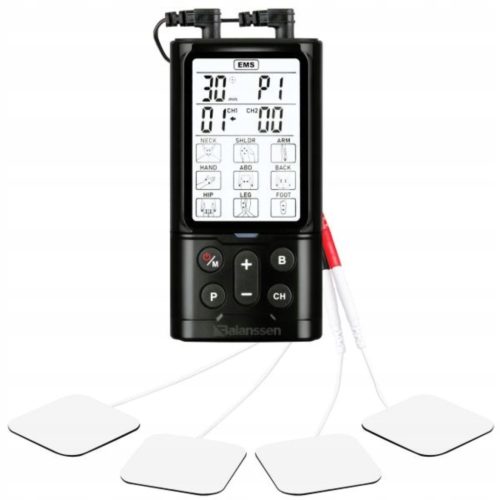 Elektrostymulator Balanssen posiada 30 programów TENS (terapia przeciwbólowa), 20 programów EMS (stymulacja mięśni), 10 programów masażu.