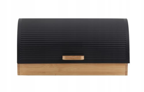 Nowoczesna forma chlebaka, jego efektowny kształt oraz połączenie metalu w czarnym kolorze z bambusem świetnie prezentują się na blacie.